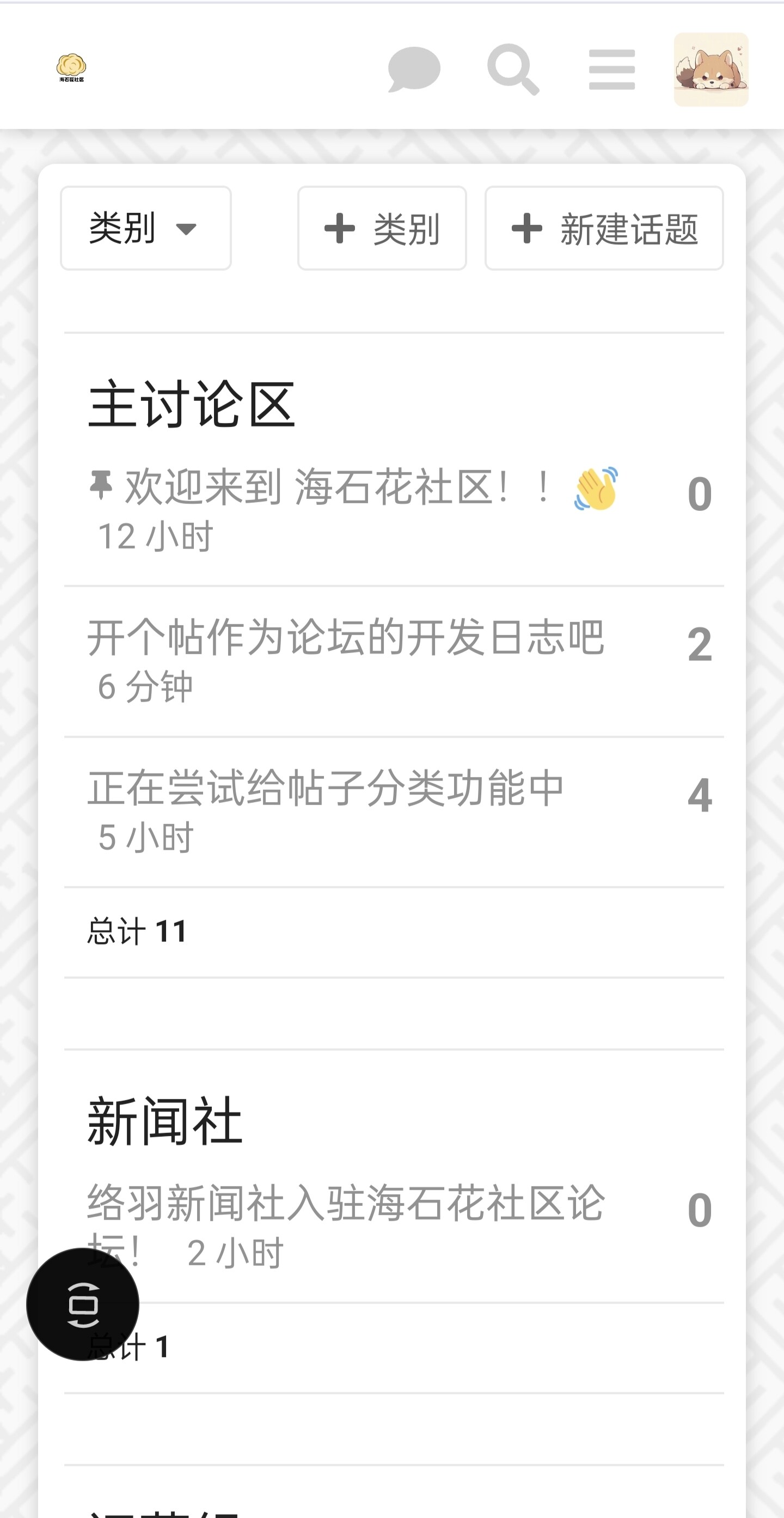 简单分了一下区,大致分成公告区,主讨论区,生活区,新闻社,运营组(运营组下知识库分区做子类别),联络处(反馈bug和提出请求建议用)